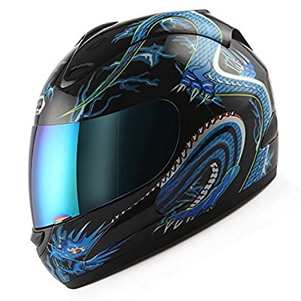 5. WOW Motorcycle Full Face Helmet Street Bike Blue Dragon Black